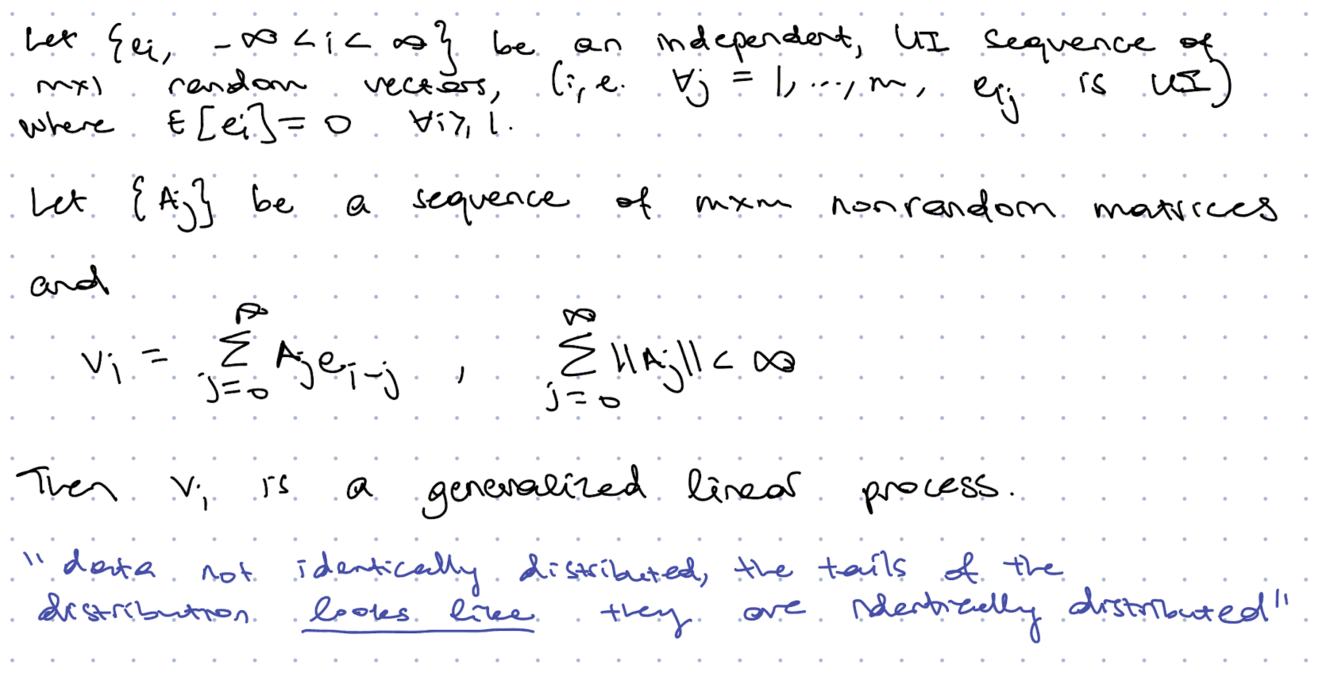 In GLP, we simply assume that e_i is UI. Therefore a linear process is by definition a GLP, since the assumptions on linear processes imply that they are uniformly integrable.
