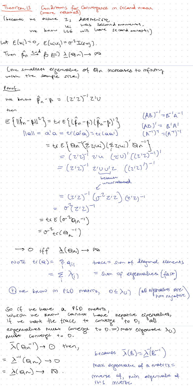 State and prove the theorem relating the convergence of Beta hat in second mean and the eigenvalues of the Q matrix.