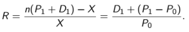 The rate of return on the stock R is defined as