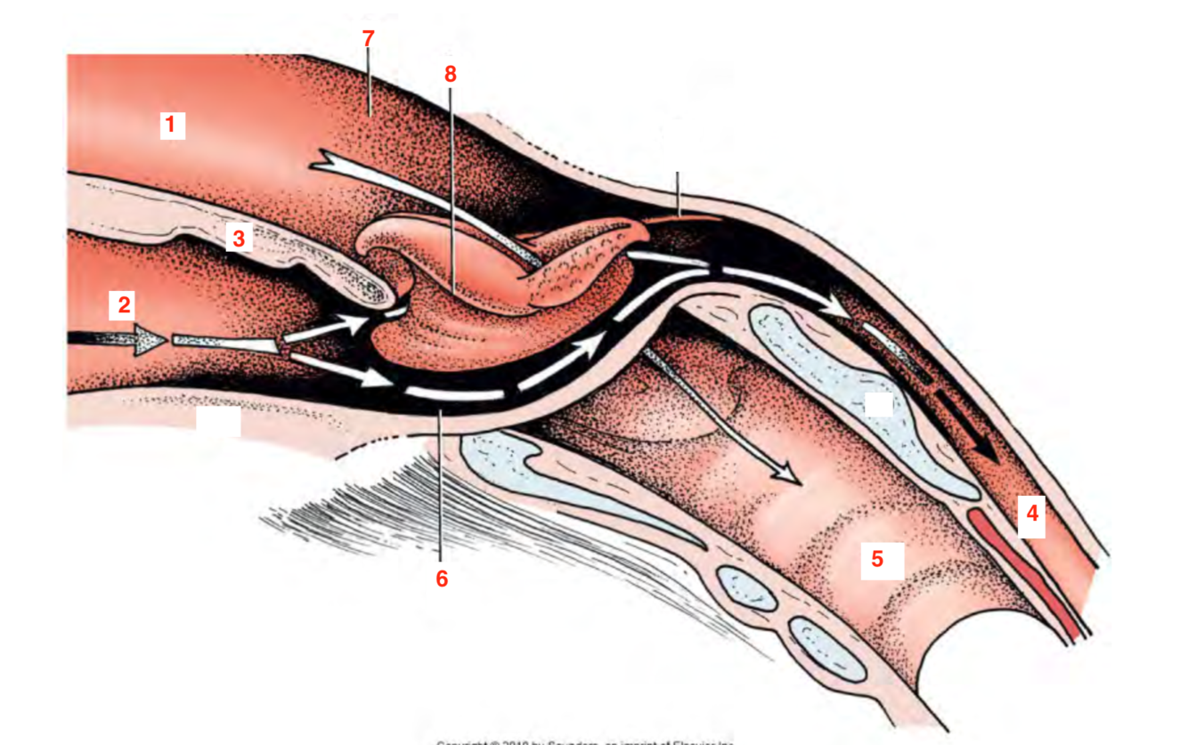 food passes from the oral cavity to the oropharynx thn through the intrapharangeal ostium, then to the laryngopharynx and down the oesphegus