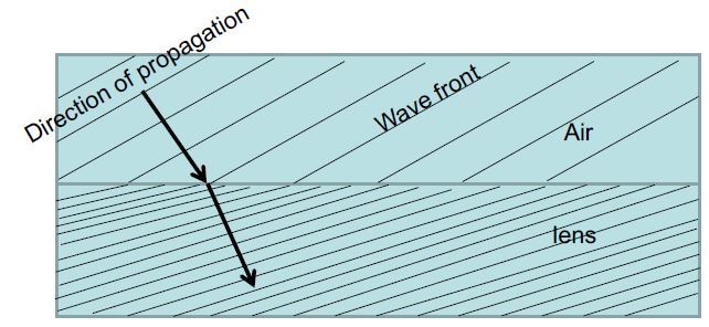 Refraction is the term used to describe the change in direction of a wave due to a change in its velocity as it passes one medium into another of different characteristic properties