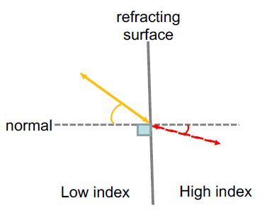 What occurs when going from a high index to low index and vice versa?