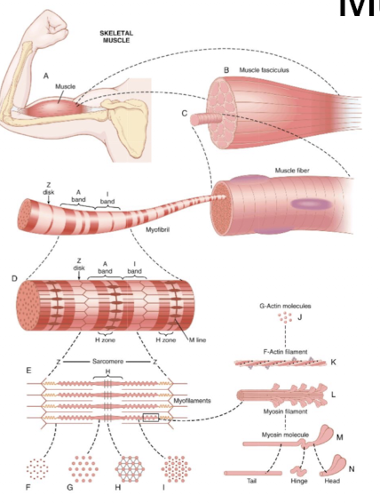 5) Sarcomere- myofibrils are sarcomeres lined up end to end (enough together and around makes up myofibril)
