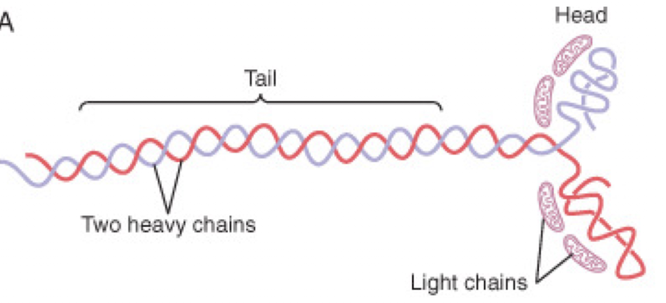 - 2 Heads: each contain 2 light chains (on each side of head)
