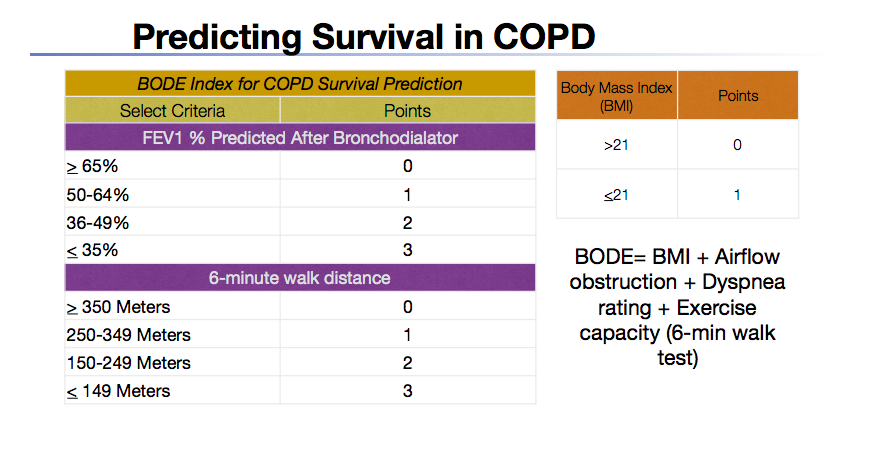 Using the BODE index which FEV1 % predicted after bronchodilator gives 0-3 points?