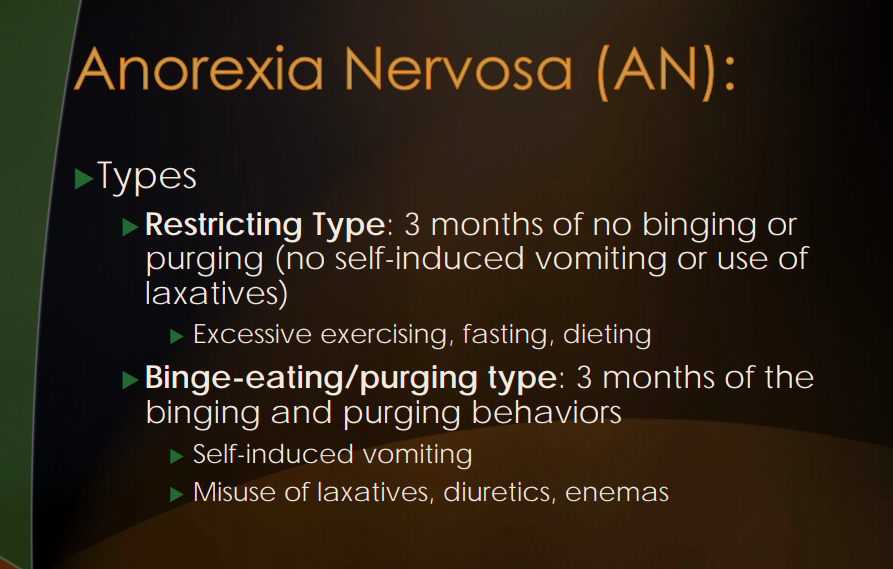 What is the criteria for restricting type vs. binge-eating/purging ty of anorexia nervosa?