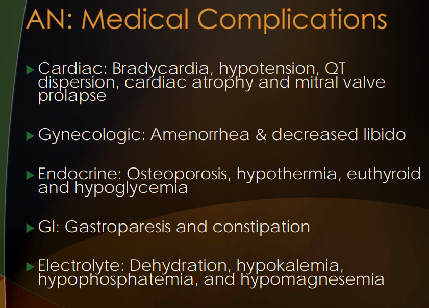 What are some of the cardiac complications associated with Anorexia Nervosa?