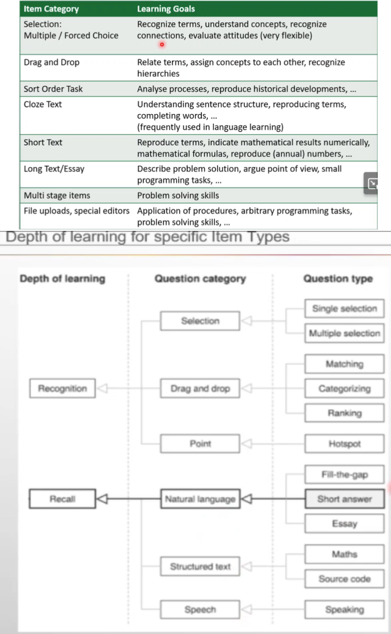 Ein didaktischer Itemtype bezieht sich auf eine Frage oder Aufgabe designed um einen Lernenden was beizubringen z.B Fallstudie, während technological itemtype sich auf eine Frage oder Aufgabe bezieht, das Technologie voraussetzt um diese zu erfüllen. z.B Python