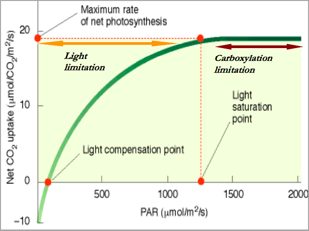 k= Light extinction coefficient (measure of degree to which leaves absorb and reflect light)