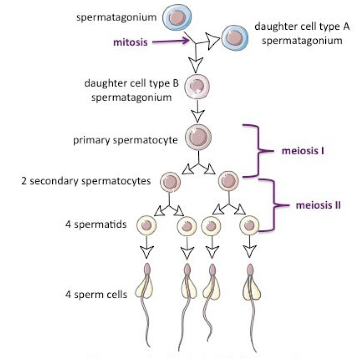 Explain the process from spermatagonium into 4 sperm cells.