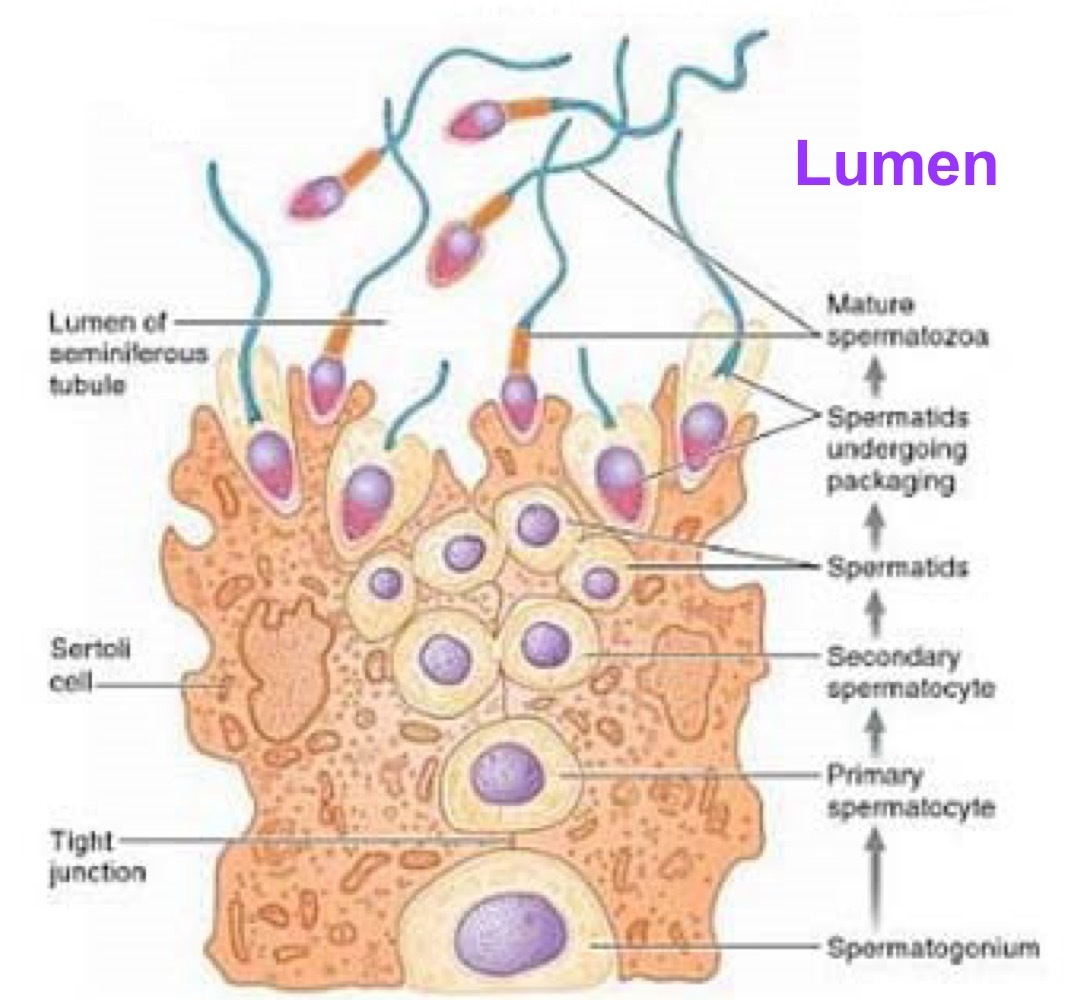 - Sertoli cells release mature spermatozoa into lumen of seminiferous tubule gaveling to epididymus for motile rxn to occur