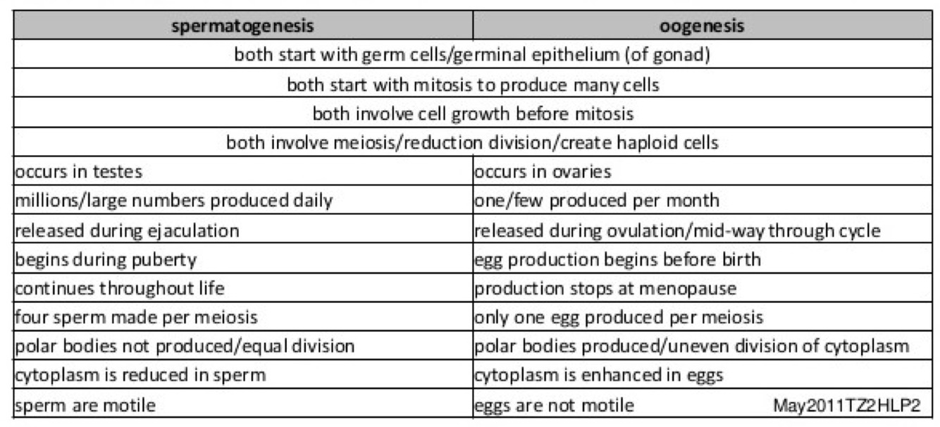 What are some differences and similarities of Spermatogenesis and Oogenesis?