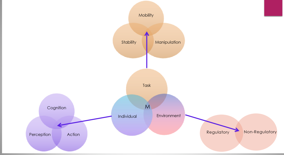 What are the 3 individual constrainsts influencing motor control and describe them