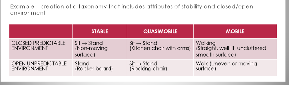 Understanding attributes of task allows therapist to develop a taxonomy of tasks that provide a framework for