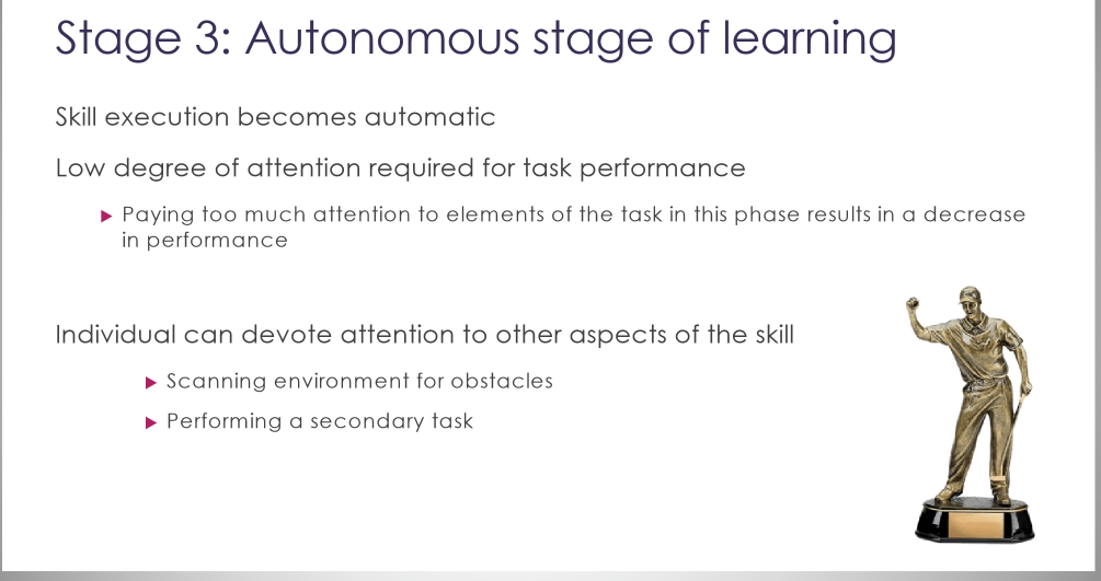 Autonomous Stage of Learning (Posner) 3 characteristics