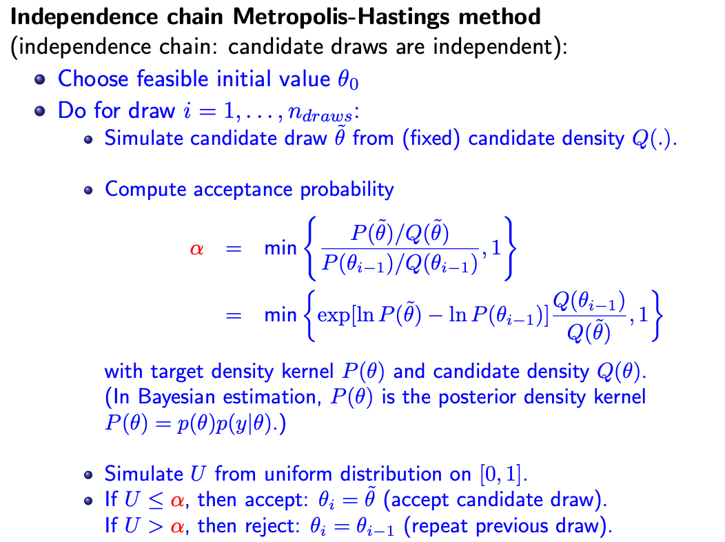When is a candidate distribution perfect (i.e. equal to the target density) for the Independence chain Metropolis-Hastings Method?