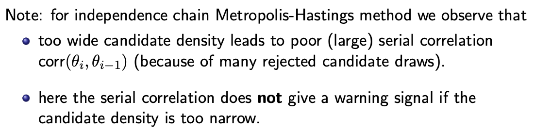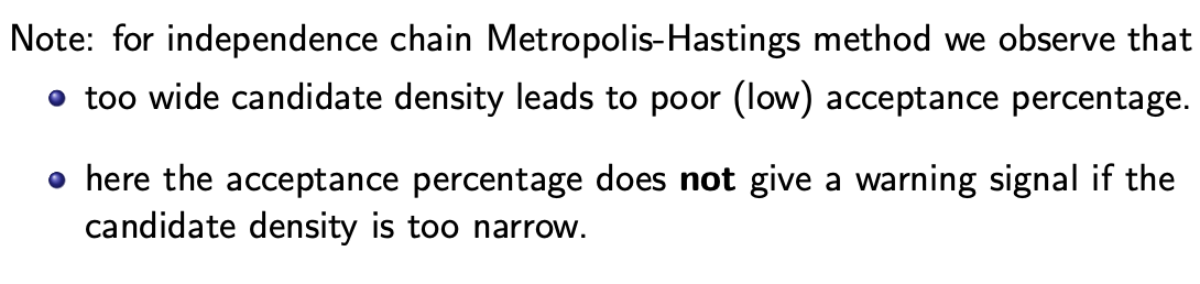 When is a candidate distribution too narrow for the Independence chain Metropolis-Hastings Method?