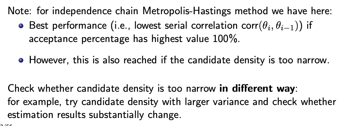 When is a candidate distribution too wide for the Independence chain Metropolis-Hastings Method?
