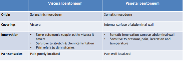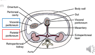 Abdominal cavity is lined with peritoneum - Parietal and visceral