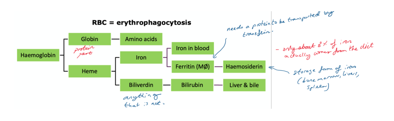 Explain how red blood cells are recycled :