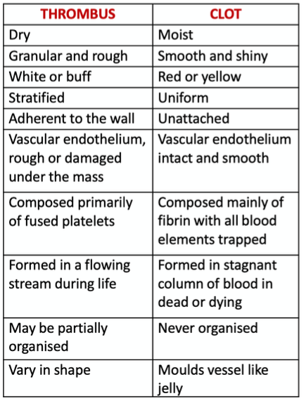How is it possible to tell the difference between thrombus and a post-mortem clot?