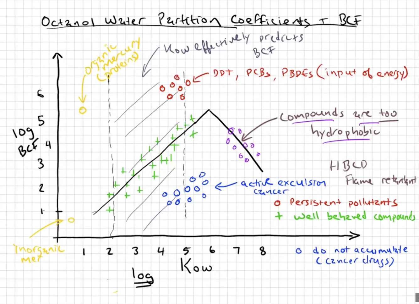 log Kow x log BCF graph: organic mercury