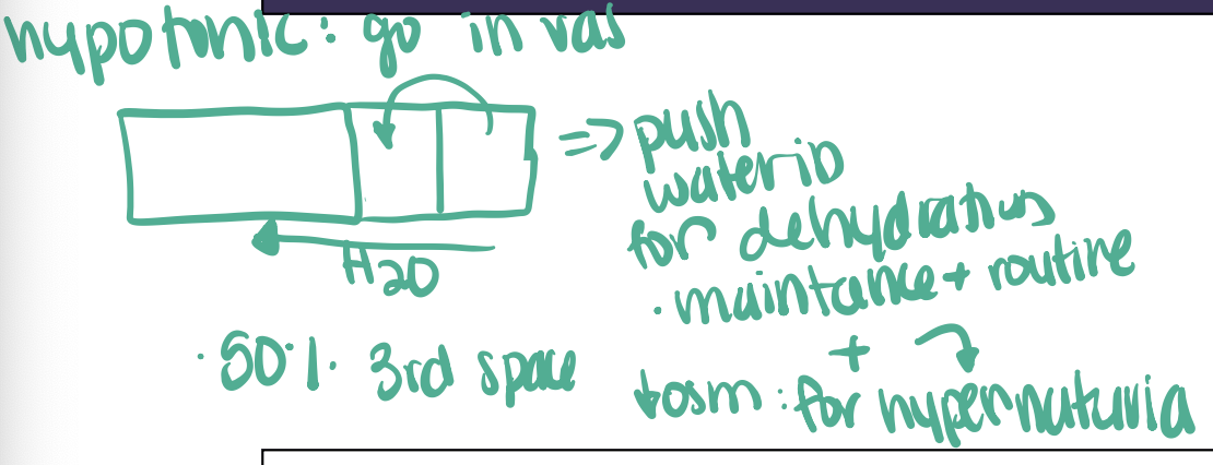 What happens in hypotonic solution? What do you use it for? 3rd spacing?