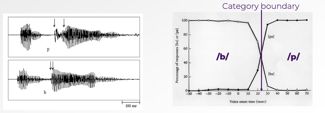 * Conclude that at one month old, we have the same categorical perception as adults (innate).