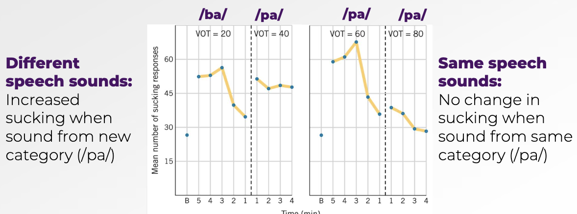 * Test phase: Hears new speech stimulus every time produces a strong suck