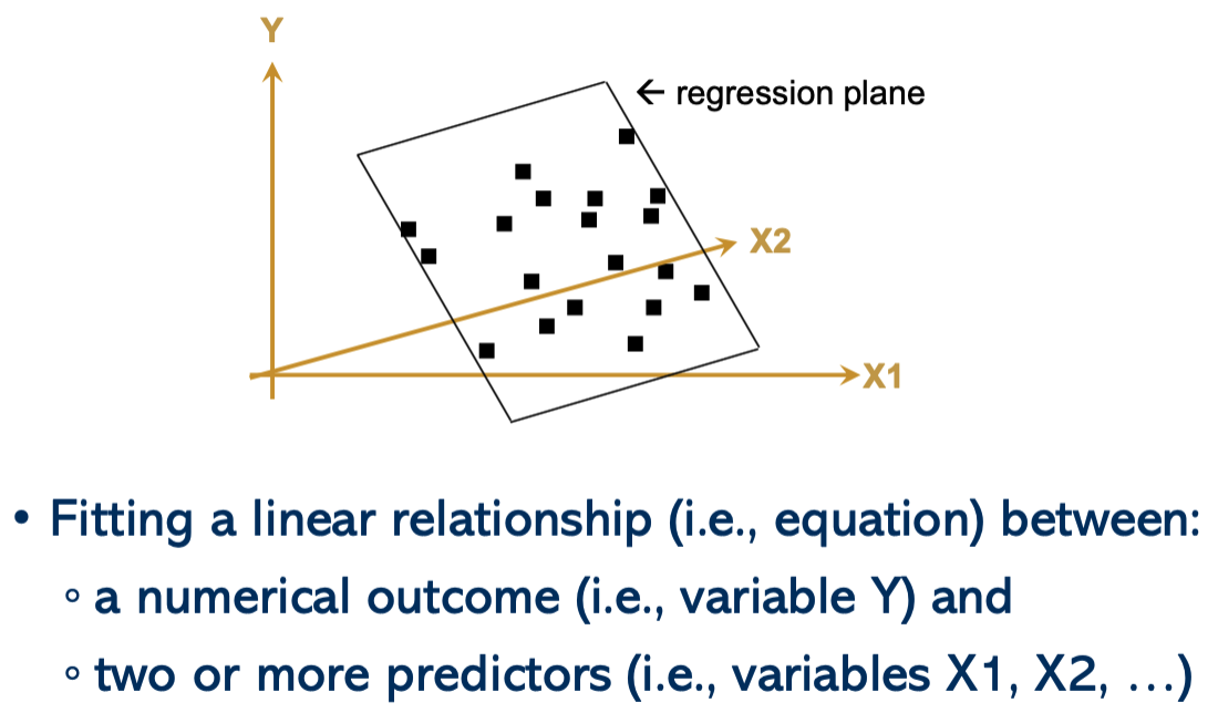 Multiple: two or more predictors, i.e., X1, X2, …