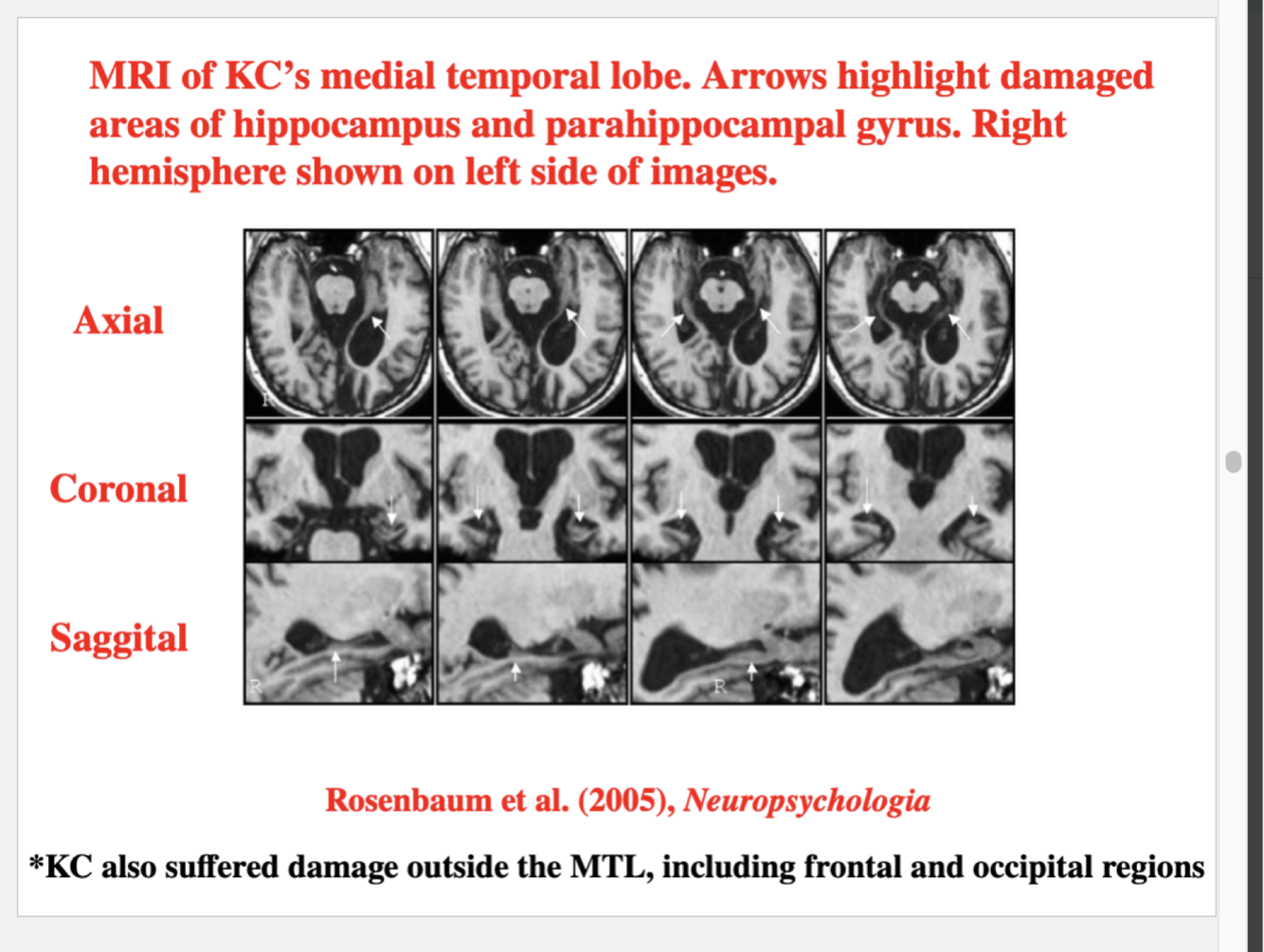 Impairments tend to be more severe with more MTL damage, e.g., H.M./Clive Wearing much more impaired than patient R.B.