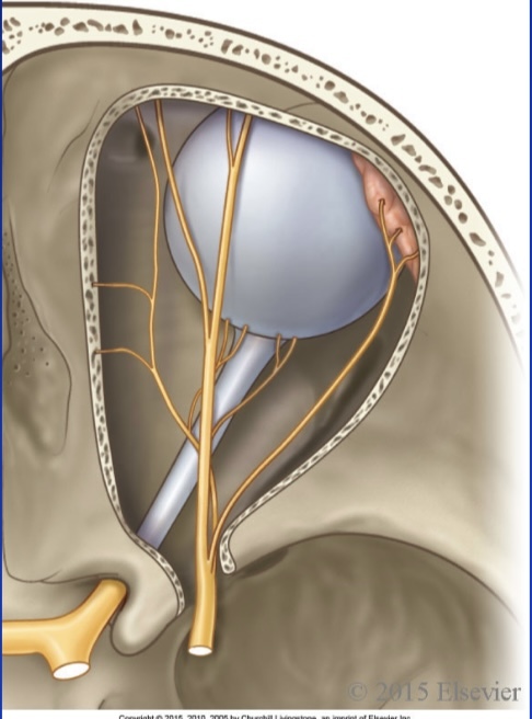 Art: Branches of opthalmic, facial and superficial temporal artery.
