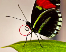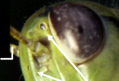 Pointing to the small black eyes are the simple eyes (ocellus).