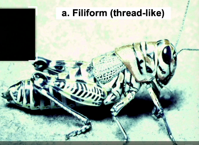 Thread like, found in more primitive insects (roaches, grass hopper)