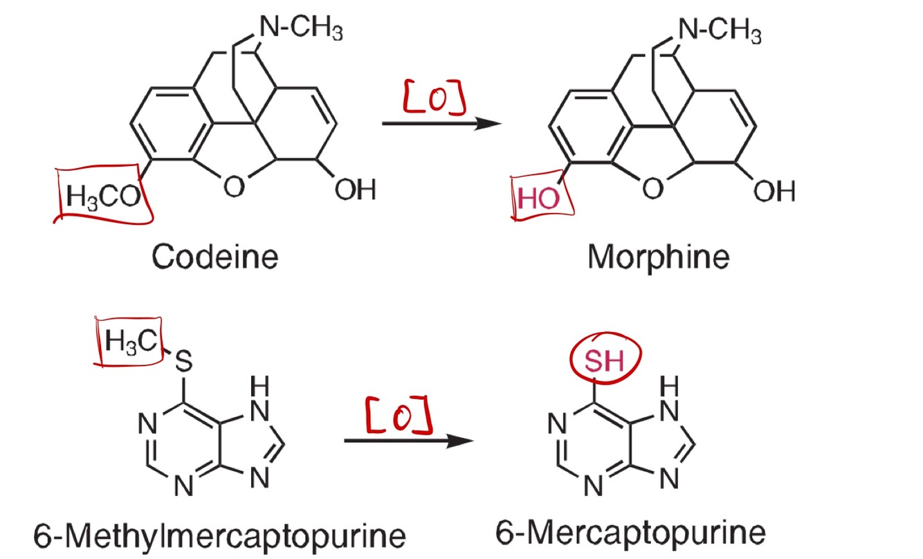 O & S dealkylations occurs in similar fashion to N dealkylations