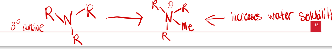 does not lead to polar/water soluble metabolites except when a quaternary ammonium derivative is formed
