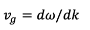 Give the equation for the group velocity of the wave from a 1D chain of atoms