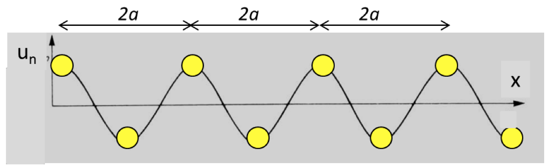 Describe a 1D chain of atoms of mass, m, and a lattice constant, a