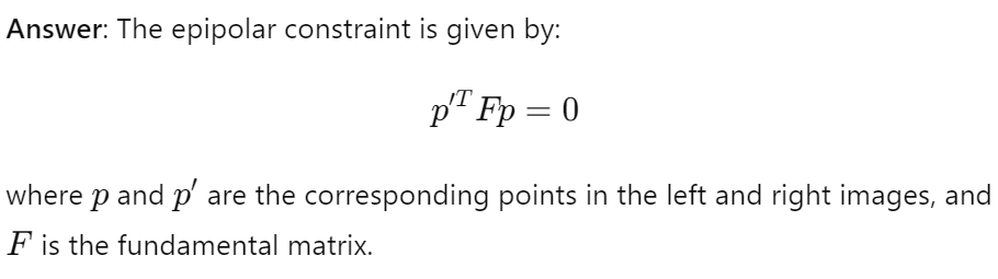 Provide the formula for the epipolar constraint in terms of the fundamental matrix.