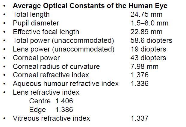 Dioptric parameters