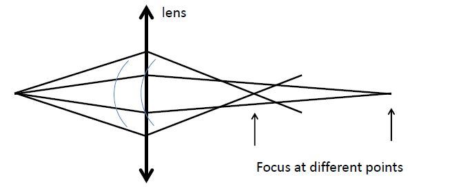 For an axial point source of monochromatic light, wavefronts diverge from the source. The wavefront reaching the paraxial region of the lens has different dioptric power comparing to the wavefront reaching the peripheral region of the lens.