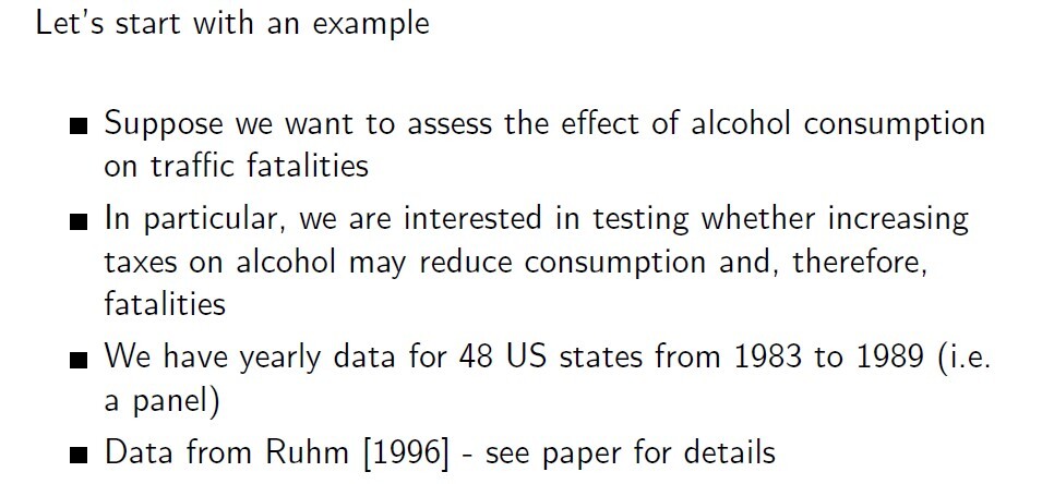 How might we set up a study to look at traffic fatalities and alcohol taxes?