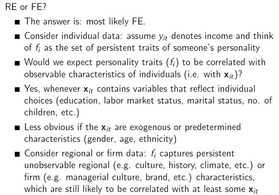 Should we assume Random Effects (RE) or Fixed Effects (FE)?