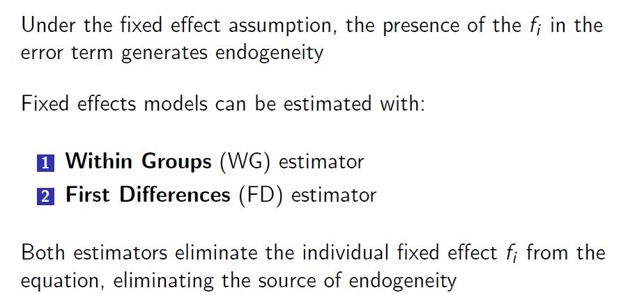 What are the two different tupes of fixed effects model and what source of endogeneity to they deal with?