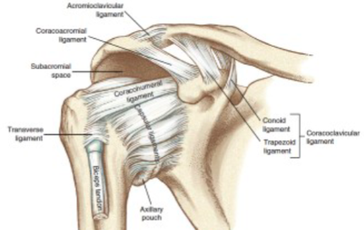 the shoulder joint can’t be fully secured to the glenoid cavity as it has to move so dynamic stabilizers must compensate for this to help hold the humeral head in the glenoid fossa