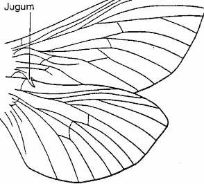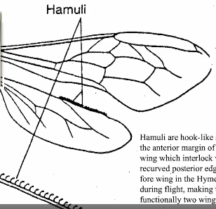 Hook like on anterior margin of hind wing and it interlocks with posterior edge of forewing. Hymenoptera