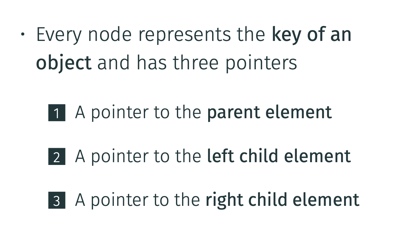 What are the three pointers every node has in a binary search tree?