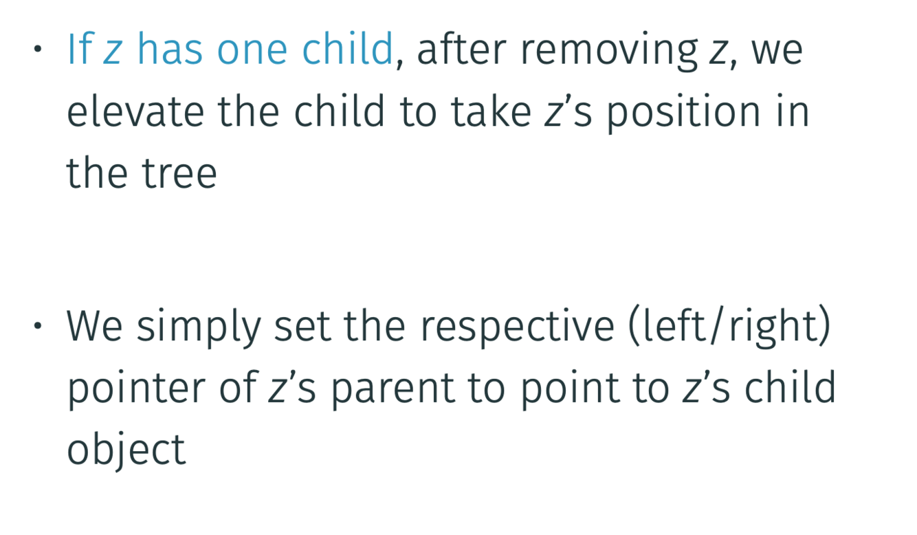 What are the steps of removing an element of a BST which has one child?