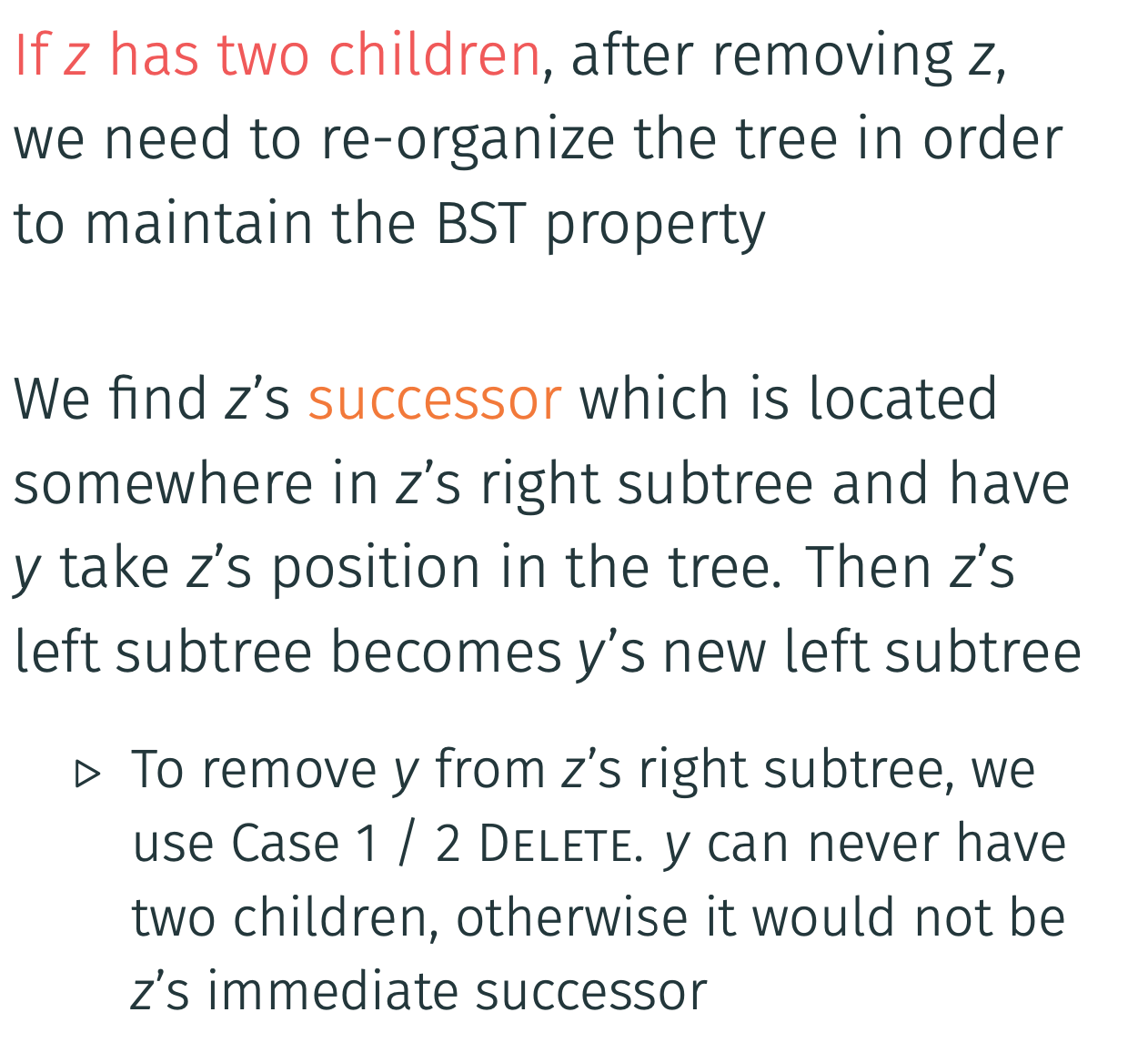 What are the ideas of the steps of deleting in a BST?