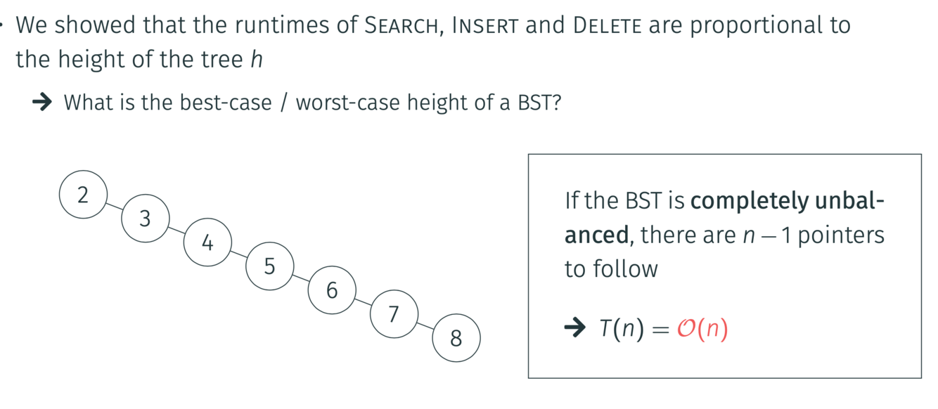 What is the worst case of Search, Insert and Deleting of a BST? When does this happen?